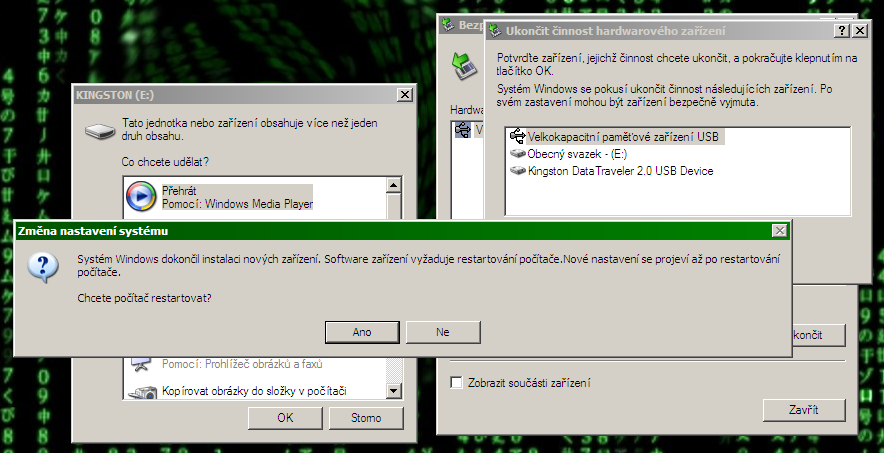 Někteří "nevěřící Tomášové" a především zcestné chyby OS Windows mě přiměli k vytvoření tohoto blogpostu. Windows nejsou ani náhodou dokonalé, a pokud jim to někdo v diskuzi připomene, konkrétní fakta popírají. Pokud se takových screenshotů bude více, možná vytvořím celou galerii. První do sbírky je vyžadovaný restart po vložení USB Flash paměti. S tím sem se setkal i na Windows Vista, ty naštěstí nepoužívám, takže až se ke mě dostane takový screenshot, rád ho přidám.