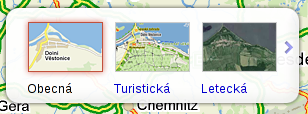 Velkého přepracování se dostalo i přepínání mapových podkladů. Ty mají nyní velkou „ikonu” v horním rohu mapy. Po najetí myší se objeví panel s výběrem a zároveň ukázkou jednotlivých podkladů. Tento panel lze dále ovládat, pokročilý uživatel tak má k dispozici navíc ještě starší letecké podklady.
