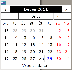 Implementace kalendáře je pak velmi jednoduchá a je implementovaná prostřednictvím jednoho javascriptovského řádku kódu navíc.