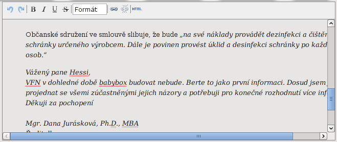 Z těchto důvodů doporučuji začlenění wysiwyg editoru do stránek volitelné a jen pro dostatečně zaškolené uživatele, kteří ví co si mohou dovolit a výsledek nebude srovnatelný z omalovánkami dětí z mateřské školky.